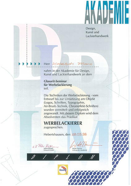 Der traditionsreiche Lackierbetrieb besteht bereits seit 1927 und wird seit 2003 von mir, Marc Kolesch, geführt.